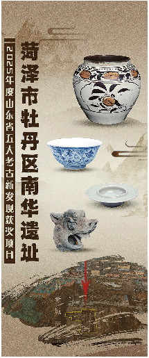 菏泽市牡丹区南华遗址是全省发现的第一座金元州城,位于菏泽市牡丹区老城区环城公园内。其存在,既是大(黄)河留下的年轮,也是古曹州千年岁月留下的履印。该发现成果受到山东省文物考古研究院研究馆员郑同修的高度评价,他认为其少见的“古今重叠型城市遗址”面貌,既提供了珍贵的“州城”研究范例,深入研究和后续保护利用也将具有极强的现实意义。可以说,南华遗址填补了山东省内金元明清州(府)城考古发现的空白,是山东黄泛区历史时期城市考古的重要突破。本次考古中,共清理出灰坑、道路、房址、路沟、墙基、桥梁、灰沟、灶址、院落、瓦屋顶等856处,陶瓷、铜、铁、金器、漆器、玉石器、骨器、玻璃器等各类文物达到2200余件。