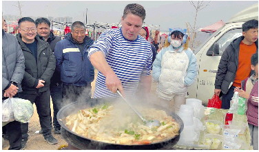 王奶奶接过碗,笑容满面地夸奖:“这外国小伙真会做日照菜!”现场排起了长队。大集上的李师傅捧着热气腾腾的烩饼说:“在外打工一年了,这口家乡味道,真暖心。”他告诉记者,自己是雷哥的粉丝,还跟着视频学做过好几道菜。