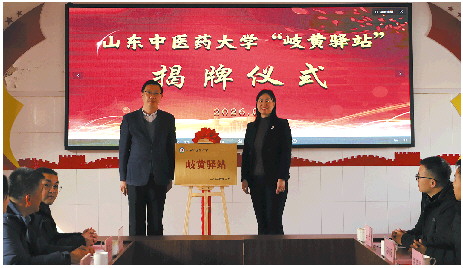 近日,山东中医药大学中医药创新研究院“岐黄驿站”揭牌仪式在济南市长清区万德街道中心卫生院举行。校地携手搭建中医药服务基层新平台,同步开展健康义诊、学术交流等活动,推动优质中医药资源下沉,助力基层中医药事业高质量发展。