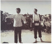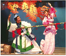 到了清咸丰年间,拉魂腔有了专业艺人和班社的雏形,演出小生、小旦的“二小戏”,或外加小丑的“三小戏”,这种戏也叫“对子戏”。旦角两腮抹浅红,用黑色、烟色描眉画鬓,抹口红,其服装道具多有变换。