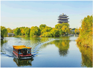 今人游大明湖,有多条线路可供选择,而孔广陶大致是沿南岸、湖中、湖西北隅、北岸、东北隅这一路线而游,这也正是今日游湖的经典线路。其记中写到过南岸鹊华桥:“即古之百花洲,小筑三楹,中建纯庙题桥诗碑……阶下环泊绿篷朱槛湖船十余,随意坐其一。”以下“柔橹轻摇,碧波微皱”一句自是物态描绘,却也透出作者心情之闲适、惬意。而“回望东南,万家春树,其外历山……皆泰岱孙枝,连绵耸秀,环若翠屏,影入湖中。真是景当佳处,任船迟也”,更凸显明湖之美,让作者流连不愿离去。