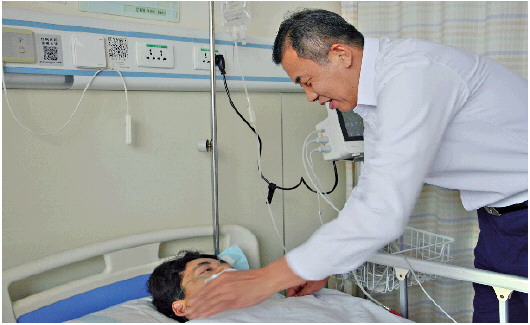 买来的生活用品被一一摆在床头——纸巾、水杯、洗漱用品。一切安排妥当,张奎杰才在床边重新坐下。