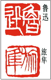 刘淑度与郑振铎的夫人高君箴是大学同窗兼闺蜜,郑振铎因此转请她为鲁迅治印。刘淑度精心篆刻了两枚印章:白文“鲁迅”和朱文“旅隼”(上海鲁迅纪念馆藏),拿给老师过目。齐白石“对‘鲁迅’这方章比较满意,说刻得好,对‘旅隼’的‘旅’字,他说安排得不好。当时老师用手指着,边说边勾画的情形,现在还想象得出”(刘淑度《我与篆刻》)。然而,鲁迅却非常喜爱这两方印,在题书《芥子园画谱三集》赠许广平时,即钤此两印;杂文集《准风月谈》出版时,又将“旅隼”印设计在封面上,并经常将这两印钤在题诗或藏书上。