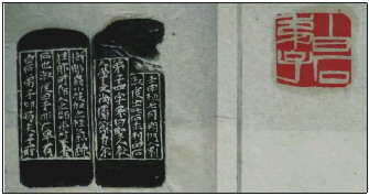1928年春,齐白石应刘淑度之请,在她准备的两方寿山石上,当面操刀示范。刘淑度回忆:“老师拿起石头,不打样,也不用印床,左手拿着石头,右手握刻刀,边刻边讲:‘刀法有几十种,总起来有十六种。但我的刀法,就是单刀偏锋一面下刀。’我聚精会神地看着老师下刀,只见老师神态自若,动作熟练,有十几分钟,‘白石弟子’四个白文字就刻出来了……另一方老师后来刻了‘淑度长年’四个白文印,印拓收在老师后来出的印谱中。”