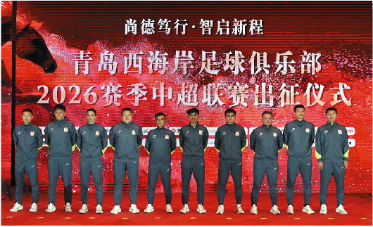 3月4日,青岛西海岸足球俱乐部教练组在新赛季出征仪式上亮相。 新华社发