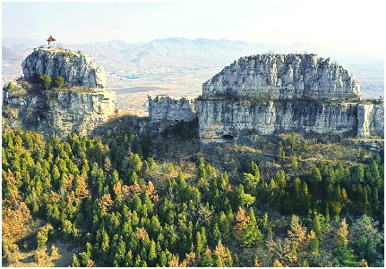 富贵顶,面积2.5平方公里,海拔455米。顶部地势平阔,盛长灌木杂草。富贵岭山腰有一块明朝万历年间的“功德碑”,字迹大多已无法辨认。
