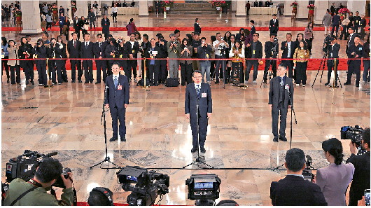 3月11日,全国政协十四届四次会议第三场“委员通道”集体采访活动在北京人民大会堂举行。 新华社发