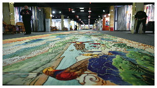王学军迫不及待地拿出手机给记者展示了一张照片,照片中是瑞鑫集团近期给北京会展中心打造的一款30米长的壁毯《日照金山》。据了解,这里的手工地毯曾铺进人民大会堂、美国白宫,也曾亮相G20峰会与世博会。