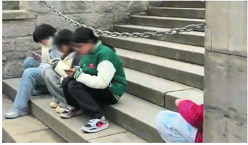 海外研学变清一色路边刷手机。 视频截图
