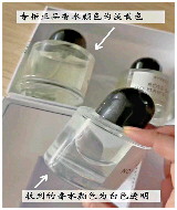 周女士将手中的香水与专柜同款对比,三处明显异常,让她确认这四瓶香水是假货:便签无专柜正品的凹凸感;味道刺鼻酒精味浓重;液体颜色与正品色差明显。