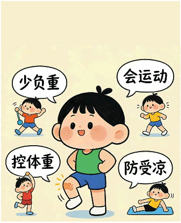 “日常要尽量减少加重关节负担的行为,比如少爬楼、少爬山、少频繁蹲起、避免深蹲过深、不做冲击性跳跃、不骑动感单车。膝盖怕冷,受凉会诱发或加重疼痛,一定要做好保暖。”李树锋说,很多人存在误区,膝盖疼就彻底不运动了。