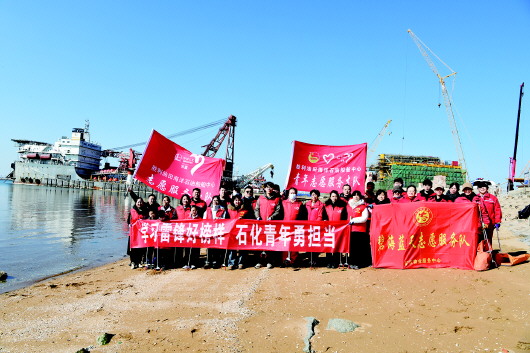 志愿者在龙口和桩西基地清扫卫生。 通讯员 李福起 摄
