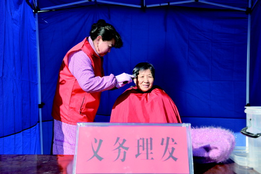 志愿者为员工群众进行义务理发。 通讯员 李福起 摄