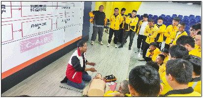 组建之初,侯玉林便深知仅有热心远远不够,必须让队员们拥有专业的施救能力。他联合区红十字会开设专项培训课堂,涵盖心肺复苏、创伤包扎、海姆立克急救法、火情处置、应急避险等全维度技能,确保每一位队员都能学有所用。从最初337名队员起步,到如今1006人集结成军,760名队员顺利考取红十字救护员证,每一辆配送车上都配备了标准化急救包,从止血纱布、消毒喷剂到应急绷带,一应俱全。侯玉林常说:“骑手们走街串巷,是城市的‘活地图’,把他们的职业优势转化为应急优势,就能让雷锋精神在街头巷尾落地生根。”