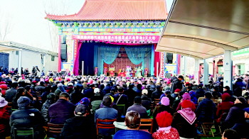 “占据山头闺中英秀韬略有,智广多谋神勇世无筹……”3月14日午后,济宁经济技术开发区疃里镇傅庄村海棠大戏楼锣鼓铿锵,弦歌悠扬。随着板胡声起,山东梆子剧目《穆桂英下山》火热开演。