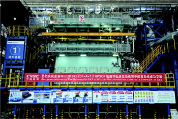 3月16日,由中国船舶集团中船发动机有限公司(以下简称“中船发动机”)建造的WinGD 6X72DF-A-1.0氨燃料低速发动机,顺利通过功能集成认可及台架试验,在青岛成功交验。这是我国第一台正式实现商品交付的氨燃料船舶发动机,填补了我国零碳船舶动力领域的应用空白。