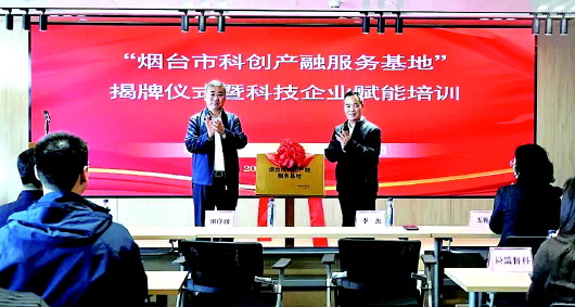 随后,在与会领导嘉宾的共同见证下,烟台市科技局党组书记、局长李杰与烟台财金集团党委书记、董事长田序润共同为“烟台市科创产融服务基地”揭牌。