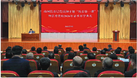 3月16上午,全县基层党员和干部“新春第一课”暨县委党校2026年春季开学典礼举行。县委书记袁长奎出席并以“数智赋能、工业强县”为主题进行授课。省派驻商河县工作队负责人岳朝伟出席活动。