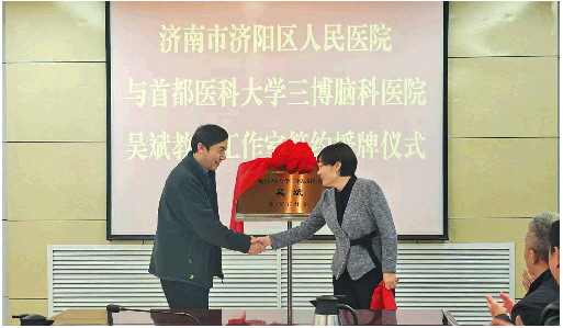 济阳区卫生健康局党组书记、局长刘娟与吴斌教授共同为“吴斌教授专家工作室”揭牌。