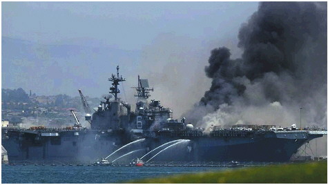 2020年7月12日早晨,停泊在加利福尼亚州圣迭戈海军基地的“好人理查德”号突然起火。当时舰上约有160名海军士兵,火灾发生后这些士兵全部撤离,附近的两艘军舰也被转移到远处的安全位置。