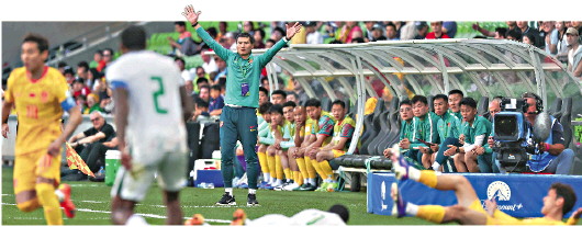 3月31日,中国队主教练邵佳一在场边指挥。当日,在澳大利亚墨尔本举办的2026年国际足联系列赛中,中国队0比2不敌喀麦隆队。 新华社发