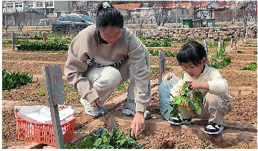 共享菜园的客群也在发生变化。“一开始老年人认领菜地居多,70%是老人、30%是年轻人。现在越来越年轻化,30-40岁的客群占65%以上。”雷明说,这部分客群主要是为了让家里老人和孩子吃放心菜,健康需求是关键驱动力,普遍倾向于“自己种、自己吃”。从老人带着子女来,变成了子女带着孩子来,菜园里的时光,藏着两代人的田园记忆。