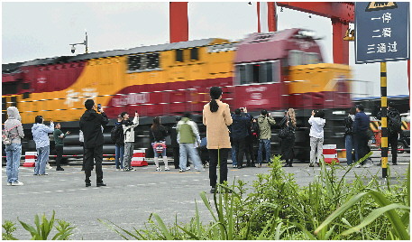 27日清晨,沙坪坝区团结村,重庆国际物流枢纽园区在晨光中醒来,一列满载“重庆造”商品的中欧班列整装待发。作为中欧班列始发地和西部陆海新通道策源地,这里已构建起“通道+枢纽+网络”的现代物流运行体系,国际班列开行线路64条,辐射127个国家的579个港口。