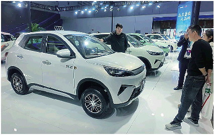 前来参观的消费者驻足了解电动四轮车的有关情况。