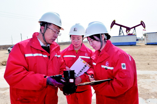 河口采油厂地质科研人员在渤南油区开展重点井产量调查。