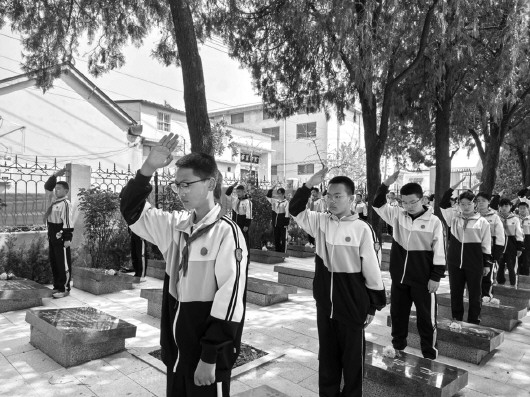 该校党支部书记段瑞林现场讲述英烈事迹。他强调,全体党员教师要牢记为党育人、为国育才的初心使命,立足岗位深耕育人事业;希望同学们珍惜幸福生活,传承英烈精神,勤学奋进,报效祖国。