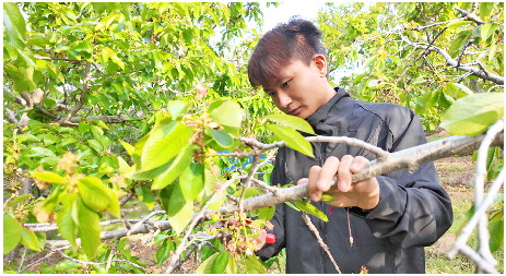 这个曾经连锄头都没摸过的青年,开始学着种地、打理樱桃园。慢慢地,郑斌逐渐掌握了管理方法,还摸索出一套自己的卖法。“别人怕樱桃烂树上,早早就摘了卖。我等熟透了再摘,樱桃更甜,小商小贩也爱收,卖的价格高。”