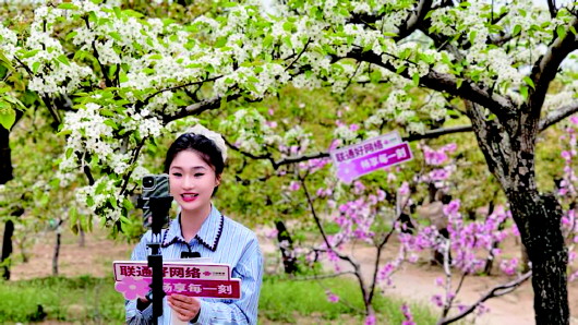 “忽如一夜春风来,千树万树梨花开”。德州夏津黄河故道森林公园内,千亩梨花如期绽放。昔日风沙肆虐、土地贫瘠之地,经一代代夏津人植梨固沙,如今才有这3.2万株百年以上的古梨树林。其中,树龄高达408年的“梨树王”更是华北地区罕见的古树珍品。登上观雪阁可俯瞰“香雪海”奇观,漫步九曲梨花径、乘坐花海小火车,在AR古树讲解中聆听岁月回响,静谧的古梨园,因现代科技的融入更添灵动与深意。联通客服主播直播打卡古梨园,让网友足不出户尽赏万亩梨花胜景。