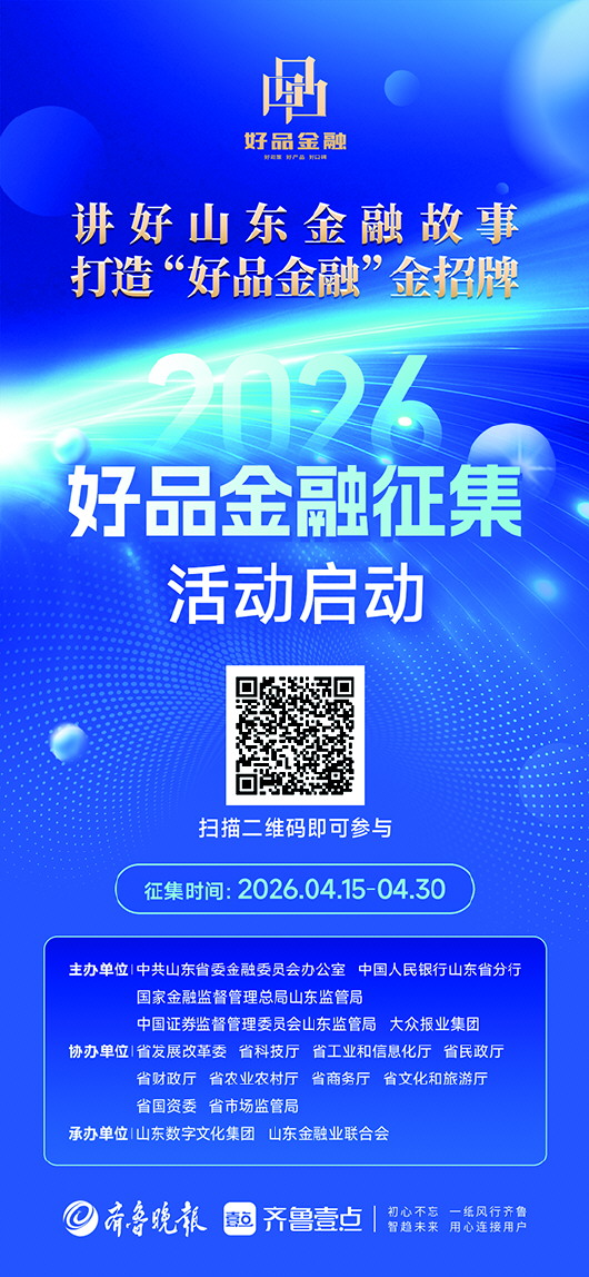 “2026好品金融”活动由中共山东省委金融委员会办公室、中国人民银行山东省分行、国家金融监督管理总局山东监管局、中国证券监督管理委员会山东监管局、大众报业集团主办,省发展改革委、省科技厅、省工业和信息化厅、省民政厅、省财政厅、省农业农村厅、省商务厅、省文化和旅游厅、省国资委、省市场监管局协办,山东数字文化集团、山东金融业联合会承办。