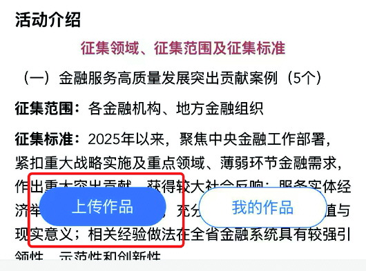 报送方面,各单位每个领域限报送1个案例或产品,多报不予受理。各单位可以在2025年“好品金融”月度专题征集活动中已经发布的案例中择优报送。