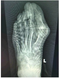 77岁的张女士两年前无明显诱因出现左足 趾疼痛,行走后疼痛加重。经对症药物治疗后,症状一度减轻,但未能根治。今年3月,她的左 趾疼痛再度加重,严重影响日常生活,且左足 趾外侧长出“鸡眼”,遂来济阳区人民医院就诊。门诊经检查诊断为“左足 外翻”,收治入四肢显微外科(骨外三科)进一步治疗。入院后,定于次日为张女士实施 外翻矫形术。