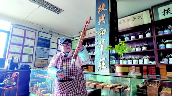 为了探寻楷木的独特禀赋,近日,记者来到孔庙附近的扶兴和笔庄。作为曾专为孔府定制贡笔的老字号,笔庄历来以楷木笔杆为一大特色,用楷木制作的大中小狼毫、瘦金等经典款式,如今依旧是书法爱好者的“首选”。作为省级非物质文化遗产,扶兴和毛笔制作技艺也已传承上百年。