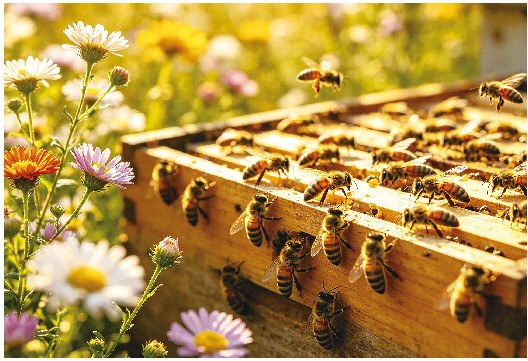 看到老许摆在路边的蜂蜜,在阳光下闪烁着动人的光泽,我不由感叹,放出去蜜蜂,就能收回来蜜,真神奇啊。老许说,这还不得靠蜜蜂的聪明、灵性、能干。在老许心中,蜂巢里的几万只蜜蜂是一个井然有序、分工负责、各司其职的群体,有着独特的生存、生活秩序,体现着令人惊叹的生存智慧。