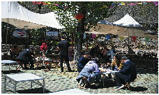 4月1日凌晨5点,天刚蒙蒙亮,外石村村民王方桥就开始忙活了,做豆腐,揉面,切菜……村里的小广场上开始升起袅袅炊烟。当日是周六,恰逢清明假期,为了迎接四面八方来村里游玩的客人,王方桥和其他几个志愿者早早地开始准备当天的大锅菜了,党支部书记、村委主任王振也将提前买好的新桌子摆放整齐,“上周周末游客来了将近200人,桌子都不够用了。”王振笑着说。