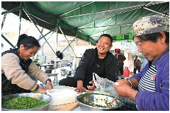 游客来了,小村庄“活”了。王振说,自从大锅菜开炒以后,外石村知名度越来越高了,村民们的收入也多了,这口大锅菜还会继续炒下去,越炒越旺。