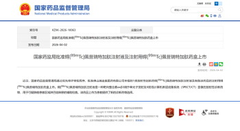 当前,核药行业正迎来黄金发展期。据沙利文预测,中国放射性药物市场规模预计在2030年将扩大至260亿元人民币。99mTc-3PRGD2的获批不仅将推动核药在精准诊疗的更广泛应用,也将助力提升中国核医学自主创新与临床实践水平。