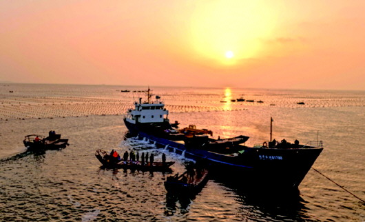 4月18日,首批500多万头在福建“越冬”的荣成寻山鲍鱼,经过一个冬天的生长,顺利北归,抵达荣成爱伦湾寻山鲍鱼港。